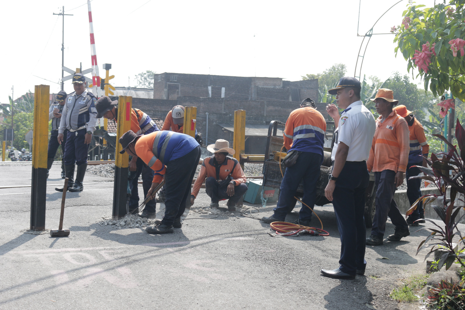 DISHUBJBG – Dalam rangka meningkatkan keselamatan di wilayah perlintasan sebidang kereta api di wilayah Kabupaten Jombang, Dinas Perhubungan Kabupaten Jombang melaksanakan pembukaan patok pembatas jalan sesuai hasil rapat koordinasi terkait perlintasan sebidang Pada JPL 74 dan JPL 75 Desan Jabon Kecamatan Jombang, dimana jalan tersebut sebagai akses yang menghubungkan kecamatan jombang dan kecamatan gudo, perlintasan ini sempat ditutup imbas terjadinya kecelakaan, kini kedua perlintasan tersebut sudah memenuhi standart untuk dilakukan pembukaan patok pembatas dimana didukung dengan pembangunan pos JPL yang diresmikan secara langsung oleh Pj. Bupati Jombang.