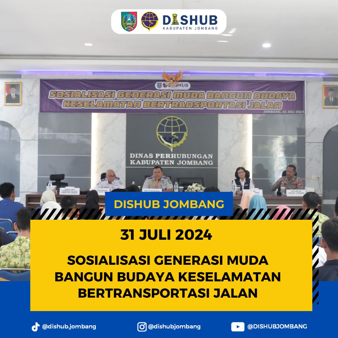 DISHUBJBG – Dalam rangka menciptakan generasi muda peduli keselamatan lalu lintas Dinas Perhubungan Kabupaten Jombang menyelenggarakan kegiatan "Sosialisasi Generasi Muda Bangun Budaya Keselamatan Bertransportasi Jalan" Pada tanggal 31 Juli 2024. Siswa/siswi SMA/SMK di Kabupaten Jombang antusias mengikuti sosialisasi “Generasi Muda Bangun Budaya Keselamatan Bertransportasi Jalan”. Acara yang digelar oleh Dinas Perhubungan Kabupaten Jombang ini bertujuan meningkatkan kesadaran generasi muda akan pentingnya keselamatan berlalu lintas.
